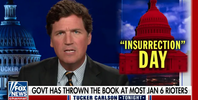 In his most severe rewriting of history on the January 6 insurrection at the US Capitol, Fox News opinion host Tucker Carlson baselessly claimed the riot was organized by the FBI.
