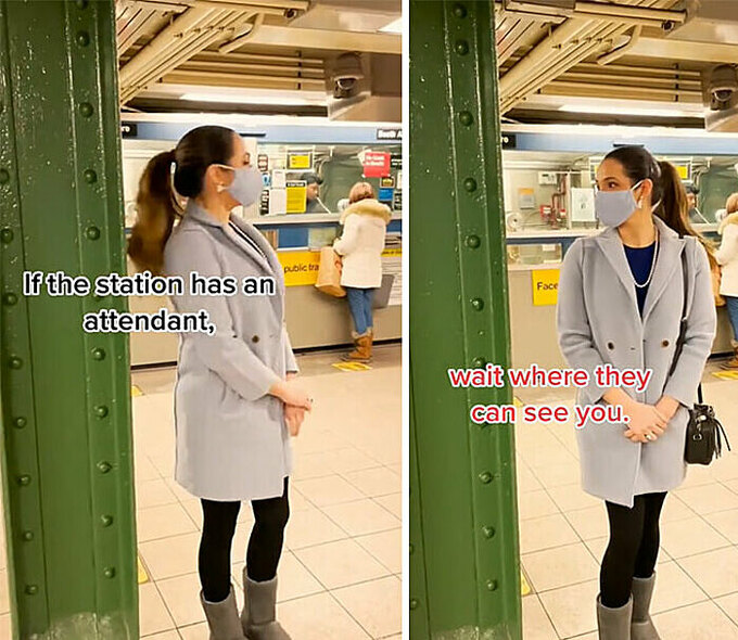 Nếu tới các sân ga, tàu... để di chuyển, hãy đảm bảo bạn đứng trong tầm nhìn của nhân viên nhà ga. Như thế, họ có thể hỗ trợ bạn trong trường hợp xảy ra vấn đề như cướp, giật hoặc bị kẻ xấu quấy rối. Ngoài ra, bạn hãy chuẩn bị sẵn một số câu trả lời nói dối, để đáp trả lại những người xa lạ tìm cách tiếp cận bạn, và hỏi các thông tin cá nhân của bạn như đi một mình hay cả nhóm, địa chỉ khách sạn...
