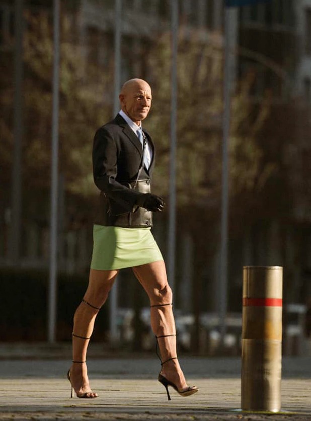 Mark Bryan, 62 tuổi, thích mặc váy cùng giày cao gót khi đi làm hàng ngày ở Đức.