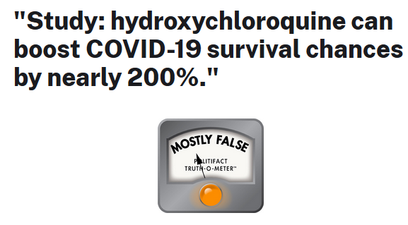 Old  Default Post overstates study’s ‘200%’ finding on hydroxychloroquine’s power vs COVID-19