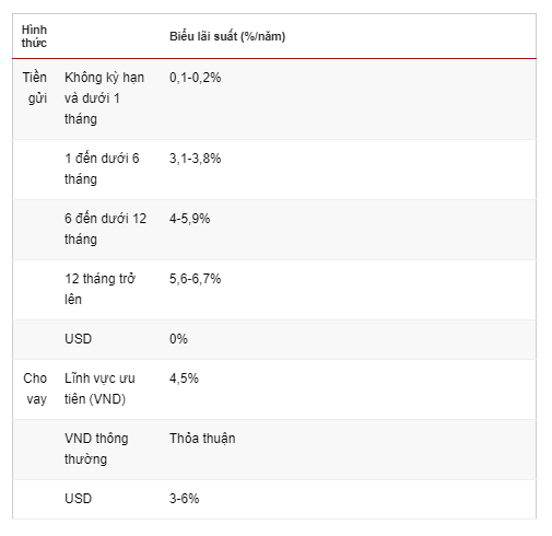 MẶT BẰNG LÃI SUẤT CỦA MỘT SỐ TCTD HIỆN NAY: