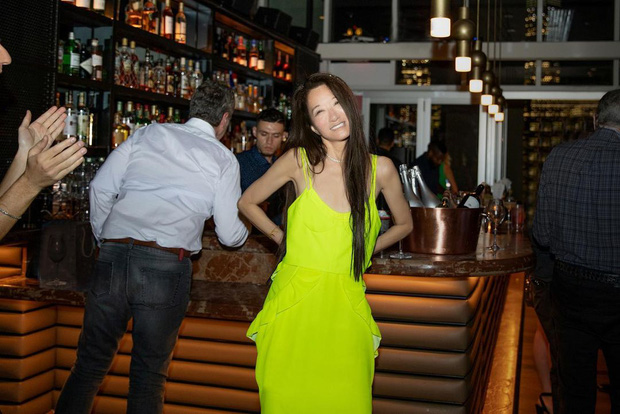 Vera Wang tự tin diện một chiếc váy liền dáng dài màu xanh neon vô cùng nổi bật và rực rỡ. Bữa tiệc riêng tư, ấm cúng của bà có sự tham gia của bạn bè thân thiết, trong đó có nhà thiết kế đình đám Calvin Klein và Donna Karan.