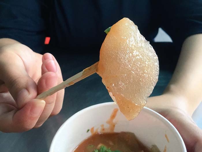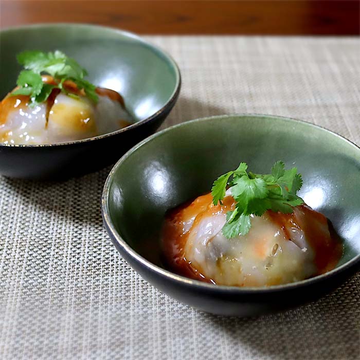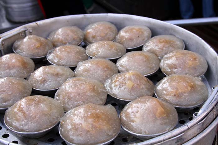 Phương pháp nấu món này phổ biến là hấp, đôi khi là chiên, trông nó không giống với bất kỳ món nào mà bạn từng ăn. Khi ăn thử, phần lớn mọi người cảm nhận nó rất thơm và dai, bên trong có nhân thịt, lớp vỏ bên ngoài tương tự như mochi.
