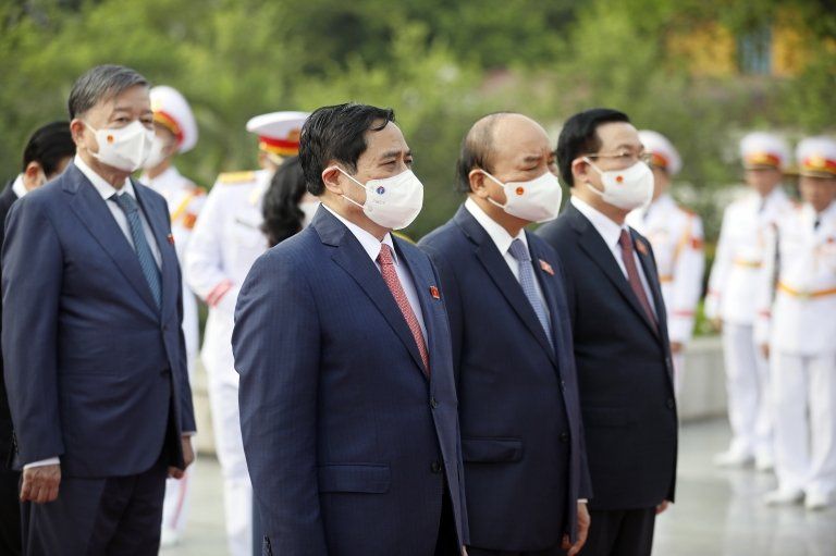 Lãnh đạo dự lễ đặt vòng hoa trước kỳ họp thứ nhất, Quốc hội khóa 15 tại Hà Nội, Việt Nam, ngày 20 tháng 7 năm 2021.