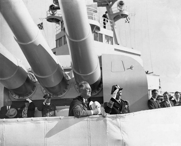 Cố Tổng thống Mỹ Roosevelt trên boong tàu Iowa.