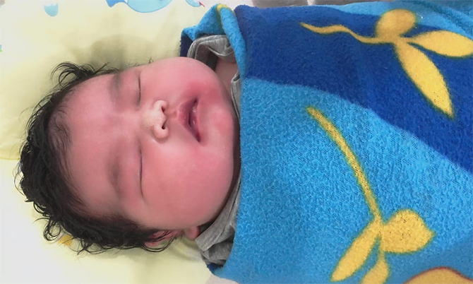 Mẹ của đứa bé đã sinh mổ. Lúc chào đời, bé nặng 6,2 kg. Nặng hơn em bé hai tháng tuổi.