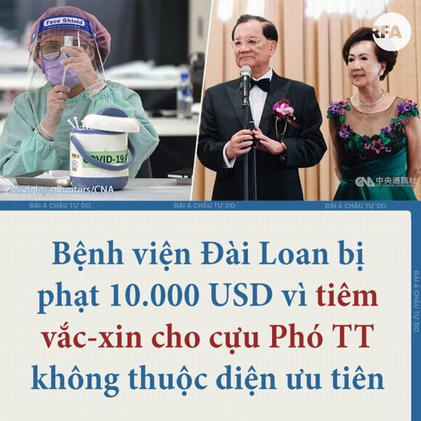 Bệnh viện Đài Loan bị phạt 10.000 USD vì tiêm vắc-xin cho cựu Phó TT không thuộc diện ưu tiên