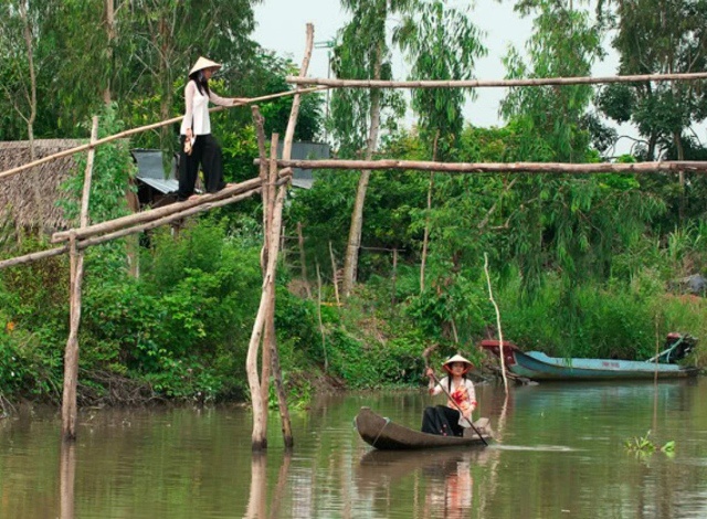 Hỏi sao không lấy cây gì bự bự làm cầu, mà cứ lấy cây ốm nhom ốm nhách? Hết tre thì tới cây tràm, tong teo phát ớn. Ừ, thì xài vậy cho đỡ giàn xóc chéo bên dưới và cây tre, cây tràm rất bền, rất dai, nắng mưa gì cũng không mục, đỡ mắc công làm đi làm lại. Vùng sông nước thì phải tính theo sông nước chứ. Thì vậy, cho nó ra cái “đặc sản” miền Tây.