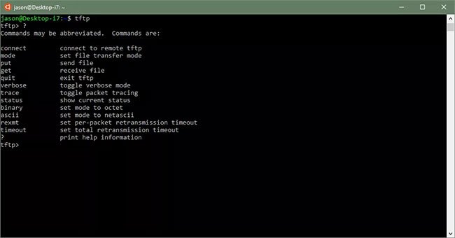 5. Truy cập TFTP thông qua Command Prompt bằng lệnh tftp. Sử dụng lệnh help hoặc xem trang tham chiếu dòng lệnh tftp trên trang web của Microsoft tại: