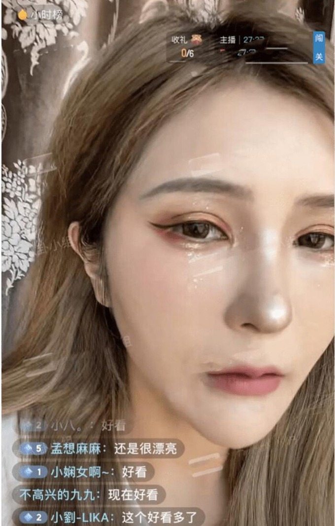 Phần má, mắt và môi của Tinh Tinh cũng sưng húp, trông kém sắc khi lỡ tay tắt filter.