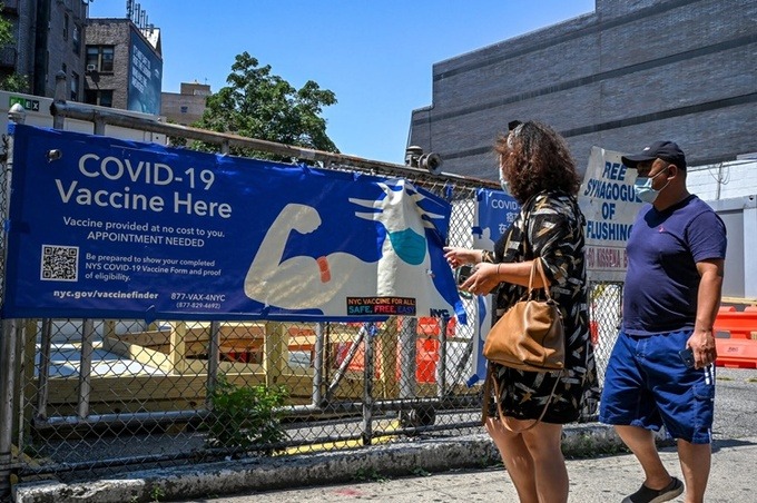 Một băng rôn quảng cáo vaccine Covid-19 ở khu Queens, New York. Ảnh: NYTimes.