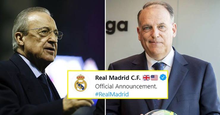 Trước đó, việc cả Real Madrid và Barcelona ra thông báo xác nhận việc Tòa án ở Madrid phủ nhận mọi quyền trừng phạt của Liên đoàn bóng đá châu Âu (UEFA) với 2 CLB này cũng như Juventus (Italia), 3 "ông lớn" châu Âu còn trụ lại ở European Super League khiến cho La Liga và Chủ tịch Javier Tebas khá "nóng mắt".