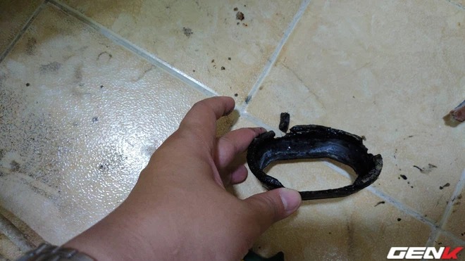 Đúng như nhận định của anh Tuấn, gioăng cao su đã bị lão hóa cứng đơ, đụng vào là vụn ra như bánh đa.