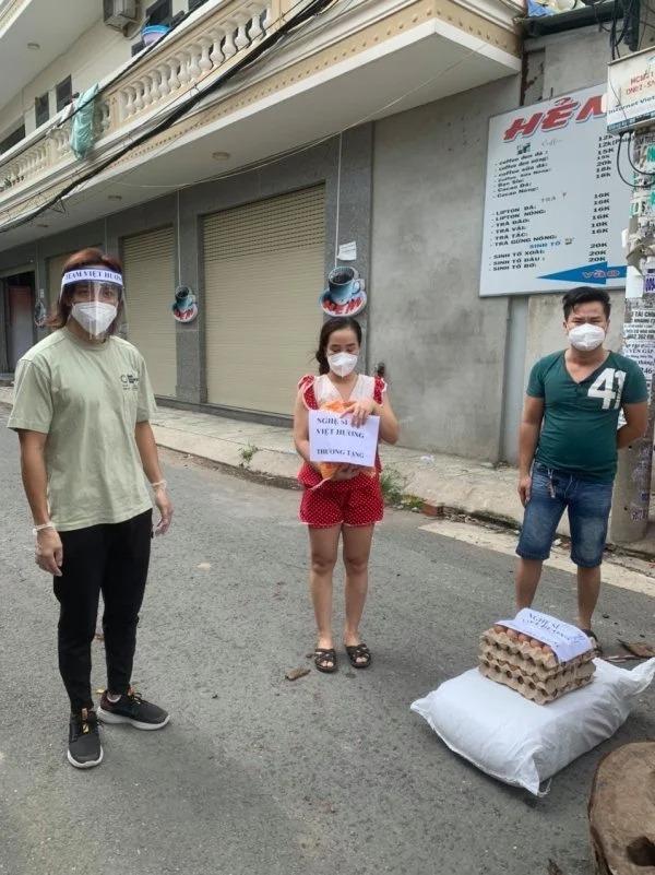 Bên cạnh đó, chồng Việt Hương cũng gặp một thách thức khác khi phải vận chuyển lương thực, thực phẩm qua những chốt cách ly được quấn quanh bởi hàng rào kẽm gai. Anh tâm sự: "Hôm nay có một điểm bọn mình tới thấy giây thép gai giăng chằng chịt làm mình cảm giác như đang thời chiến tranh. Một cảm giác khó tả! Khó khăn lắm hai anh em mới "tuồn" được bao gạo 50kg vào bên trong mà không bị rách".