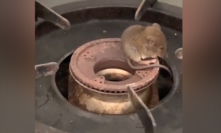 Lần đầu mới thấy chuột ngủ kiểu này. Chú chuột đáng yêu. Ngủ trên bếp nè. 'Đúng là nằm ngủ quên bên Thần chết, chủ nhà mà bật bếp phát thì có thịt ăn ngay', một người xem video hài hước.