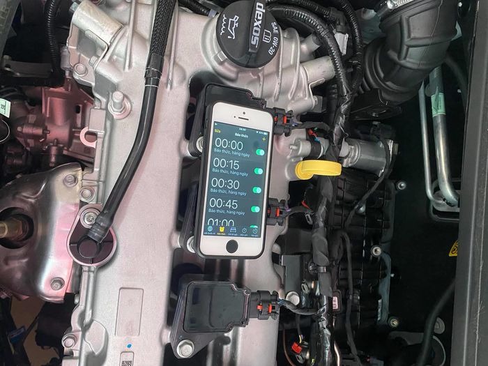 Chủ nhân chiếc VinFast Fadil đặt điện thoại trên xe vào mỗi tối và hẹn giờ để báo thức hoạt động sau mỗi 15 phút.