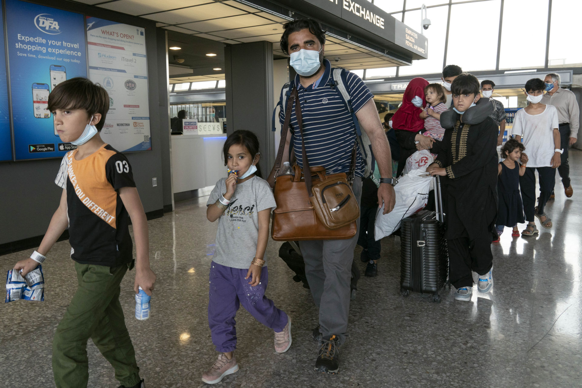 Người di tản từ Afghanistan đến phi trường Washington Dulles International Airport, ở Chantilly, Virginia. (Hình minh họa: AP Photo/Jose Luis Magana)