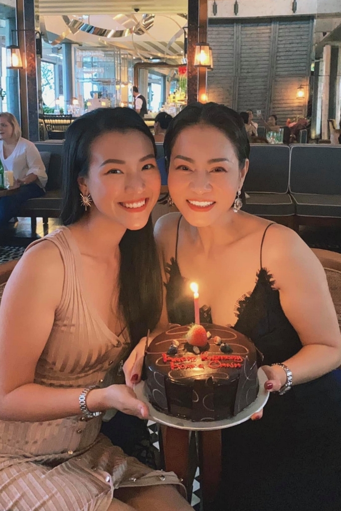 Hoàng Oanh nói cô hạnh phúc trước tình cảm của các đàn chị, điều khiến cô thấy được an ủi khi phải xa gia đình hơn một năm qua. Hoàng Oanh đưa con đến Singapore để đoàn tụ chồng - anh Jack Cole, người Mỹ - hồi tháng 9/2020. Ảnh: Facebook Hoàng Oanh