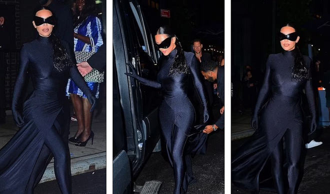 Kim Kardashian mặc bộ đồ kín mít tham dự tiệc mừng "hậu Met gala" diễn ra ở New York, Mỹ tối 14/9. Người đẹp "siêu vòng ba" không chỉ ăn vận "kín như bưng" mà cô còn đeo thêm chiếc kính đen che gần nửa gương mặt.