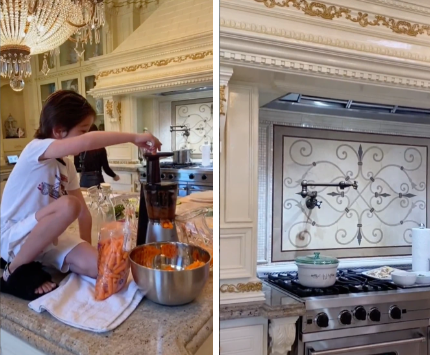 Mặc dù chưa được "diện kiến" các khu vực đựng đồ ăn khác trong tủ lạnh nhà Bảo Linh, thế nhưng khu bếp cũng không khỏi khiến người xem trầm trồ. Chỉ là khung cảnh làm phở và gỏi cuốn, cậu em trai thì đang làm nước ép, ấy vậy nhưng... nhìn xem, nhìn căn bếp của nhà rich kid này. Quá ấn tượng đúng không?