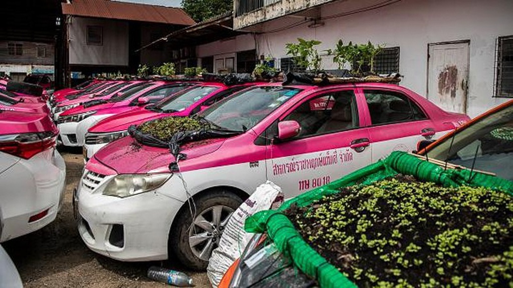 Đến nay, khi dịch bệnh Covid-19 tại Thái Lan vẫn đang diễn biến phức tạp, tình trạng các hợp tác xã taxi ở quốc gia này còn rơi vào cảnh bi đát hơn. Theo đó, tại một bãi tập kết xe taxi ở Soi Bang, quận Phasi Charoen, Bangkok gần 300 xe taxi của HTX vận tải Bowon đã nằm phủ bụi suốt gần 2 năm nay. HTX đã bố trí 30 nhân viên ở lại để trông coi số xe này.Việc phơi mưa phơi nắng hàng tháng trời khiến nhiều xe đã xuống màu sơn. Vì vậy, các nhân viên làm việc tại HTX này đã nảy ra ý tưởng sử dụng nắp ca-pô, mui xe... để trồng rau nhằm có nguồn thực phẩm và che mưa che nắng cho hàng trăm xe tại đây.