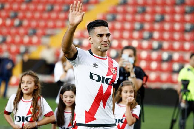 Tiền đạo Radamel Falcao gây bất ngờ khi mặc áo số 3 vốn thường dành cho các hậu vệ trong buổi ra mắt CLB mới Rayo Vallecano hôm 16/9.