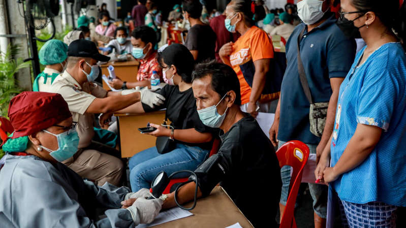 a group of people sitting in front of a crowd: A coronavirus vaccination drive in Medan, Indonesia, last week.© Dedi Sinuhaji/EPA, via Shutterstock A coronavirus vaccination drive in Medan, Indonesia, last week.