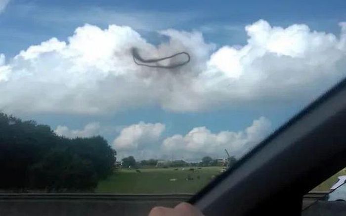 Vòng tròn kỳ lạ xuất hiện trên bầu trời khiến nhiều người hoang mang về nguồn gốc thật sự của nó. Theo như video được đăng tải, vòng tròn màu đen đầy bí ẩn, đang trôi nổi và như đang xoay vòng, xung quanh được bao phủ bởi một làn khói đen.