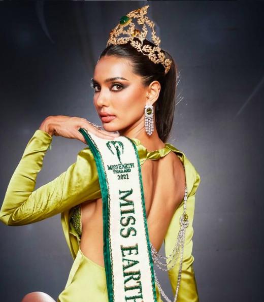 Được biết, tân Hoa hậu Trái đất Thái Lan 2021 sở hữu chiều cao 1,7m cùng ngoại hình gợi cảm và gương mặt xinh đẹp. Cô nàng 28 tuổi từng lọt top 10 Miss Universe Thailand 2017 và top 20 Miss Universe Thailand 2020 trước khi đăng quang Hoa hậu Trái đất Thái Lan 2021.