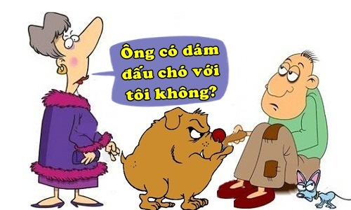 - Bây giờ hãy cho hai con chó đấu với nhau đi. Nếu chó của tôi thua, tôi đưa ông 50 đô la; ngược lại, ông chỉ cần đưa tôi 10 đô la thôi. Có dám không?