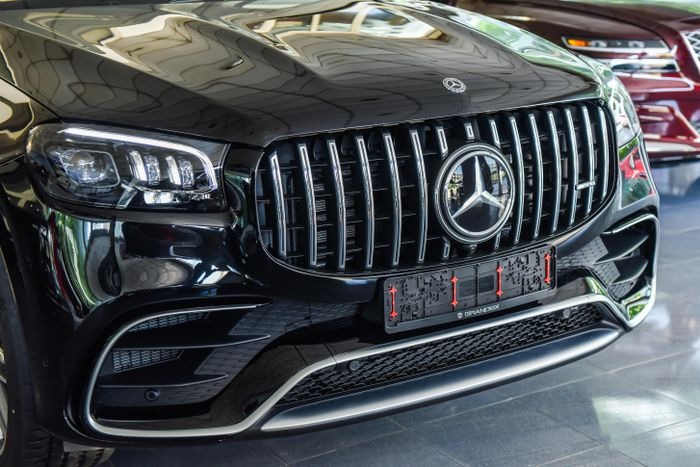 Điểm nhấn chính ở đầu xe là lưới tản nhiệt AMG cỡ lớn với các thanh kim loại xếp theo chiều dọc. Cản trước cũng được mở rộng và có thêm cánh hướng gió, giúp diện mạo của Mercedes-AMG GLS 63 hầm hố hơn.