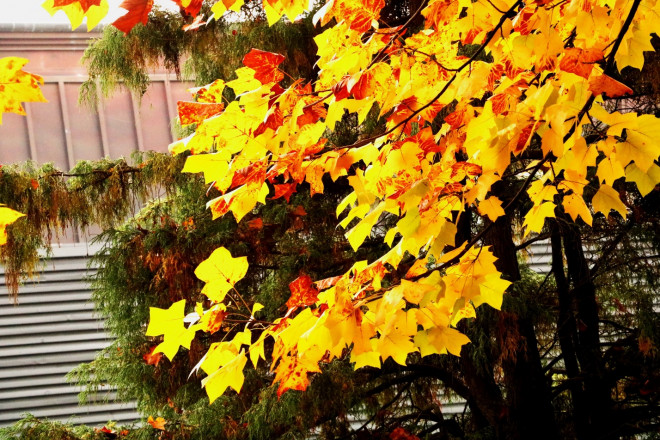 Hàng cây ngân hạnh vàng óng rực rỡ vào mùa thu