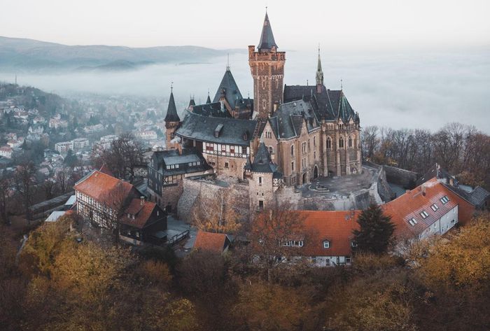 Lâu đài Wernigerode tọa lạc trên đỉnh núi Harz ở miền Bắc nước Đức. Nơi đây từng là nhà nghỉ săn bắn của những nhà cầm quyền và giới quý tộc địa phương vào thế kỷ 12. Vào cuối thời Trung cổ, lâu đài được dùng làm pháo đài. Mãi đến thế kỷ 19, tòa lâu đài mới sở hữu nét đặc trưng của kiến trúc lãng mạn sau nhiều năm xây dựng. Ảnh: Explorest.