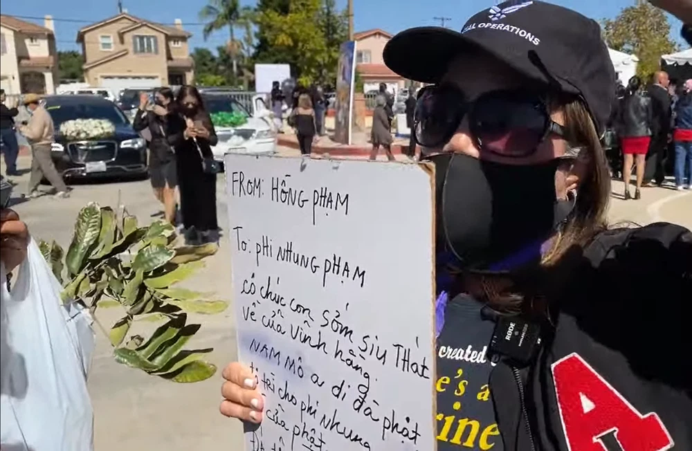 Theo tang lễ của cố nữ ca sĩ Phi Nhung đã diễn ra tại chùa Huệ Quang, Westminster California. Tới dự đám tang có đông đảo nghệ sĩ và khán giả hâm mộ, trong khi đó lại có một hành động của vị khán giả này gây chú ý tại đám tang Phi Nhung. Nhưng ngay lập tức cũng có người phản bác ý kiến của cô ta và bênh vực Hồ Văn Cường.