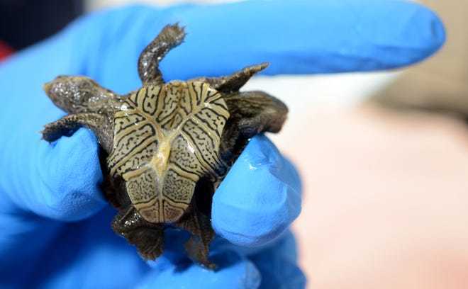 Một con rùa kim cương hai đầu quý hiếm mới được phát hiện ở Mỹ đang được điều trị tại trung tâm động vật hoang dã ở Barnstable, Massachusetts.