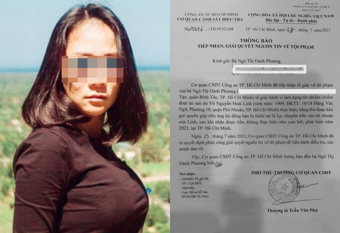 Cơ quan Cảnh sát điều tra Công an TP.HCM đã mời bà lên làm việc sau 3 tháng gửi đơn tố giác danh hài Hoài Linh về hoạt động thiện nguyện tại miền Trung vào cuối năm 2020. Sau tiếp nhận đơn tố giác của bà N.T.O.P. hồi tháng 7, Công an TP.HCM vừa mời bà lên làm việc theo như trong đơn gửi cơ quan chức năng hồi tháng 7, bà N.T.O.P. tố giác hành vi lạm dụng tín nhiệm chiếm đoạt tài sản do Võ Nguyễn Hoài Linh.