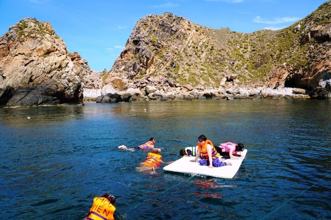 Khách du lịch bơi ở biển Kỳ Co, Bình Định. Ảnh: Phạm Linh