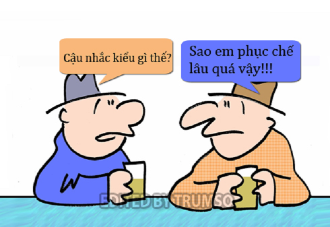 Hai anh bạn hẹn nhau ở quán bia, một anh trách: "Sao tuần trước hẹn mà không đến?".