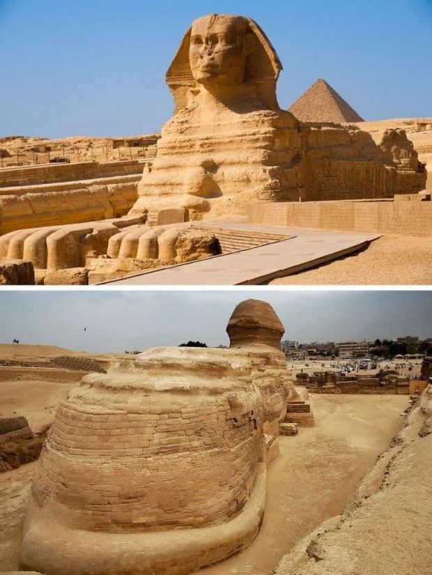 Tác phẩm nghệ thuật đặc trưng trong khu kim tự tháp Ai Cập thường được biết đến với hình ảnh đầu người và mình sư tử ở mặt trước. Nhưng trên thực tế, Nhân sư là một sinh vật thần thoại với đầu của con người, chim ưng, mèo hoặc cừu và cơ thể của một con sư tử với đôi cánh của đại bàng.
