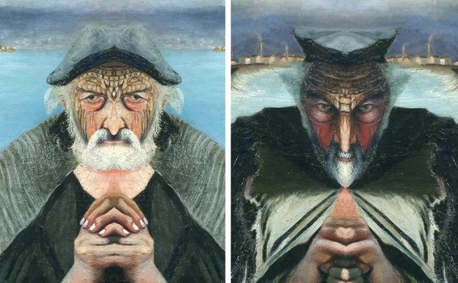 Năm 1902, họa sĩ người Hungary Tivadar Kosztka đã thành danh nhờ kiệt tác Ông lão đánh cá. Bức tranh lột tả hình ảnh ông lão với khuôn mặt già nua, khắc khổ đang siết chặt chiếc gậy bằng hai tay, phía sau là vùng biển tĩnh lặng. Nếu thử lấy một tấm gương và đặt vào giữa bức tranh, người xem sẽ phát hiện bức tranh ẩn chứa hai khuôn mặt với vẻ mặt hoàn toàn trái ngược nhau.