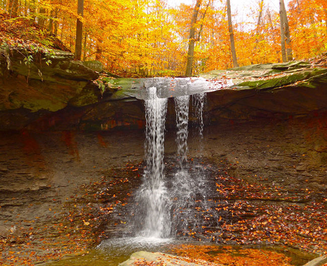 Vườn quốc gia Thung lũng Cuyahoga vào thu cũng mang sắc thái thật lộng lẫy. Một thác nước nhỏ được tô điểm bởi màu cam, vàng của lá cây, khu rừng xung quanh thác đẹp như tranh vẽ.
