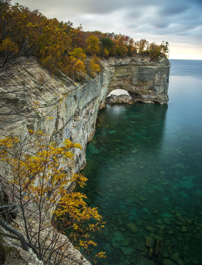 Rocks National Lakeshore ở Michigan thực sự là một bức tranh ghép của các kỳ quan thiên nhiên. Dọc theo bờ hồ Superior là những vách đá sa thạch cao chót vót cùng các bãi biển tuyệt đẹp và những thác nước, ngọn hải đăng, hồ và suối, nơi này đem đến khung cảnh tuyệt diệu, nhất là vào mùa thu.