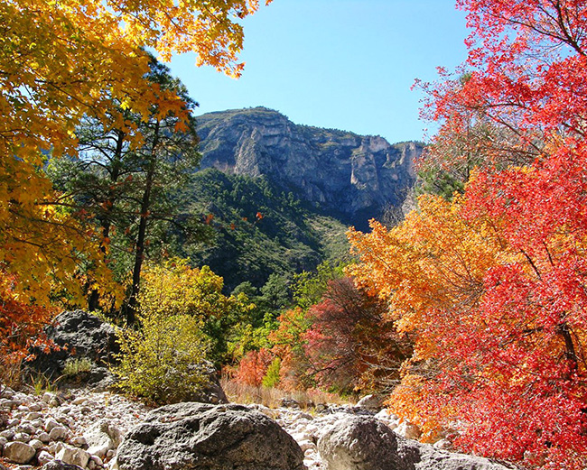 Vườn quốc gia dãy núi Guadalupe, Texas là nơi có những rạn san hô hóa thạch cổ cùng sa mạc, cồn cát, hẻm núi, động vật hoang dã... và chúng càng trở nên hấp dẫn hơn khi được nhuộm một chút màu sắc của mùa thu.