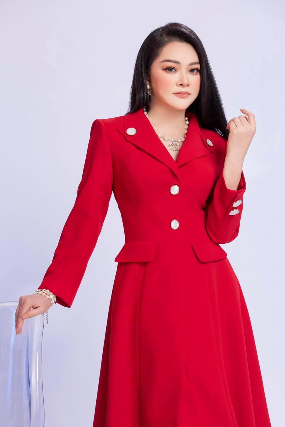 Thỉnh thoảng, chị thử nghiệm với phong cách hiện đại khi diện các mẫu đầm cổ vest, phối cùng trang sức ngọc trai, đá quý. Ca sĩ cho biết hay mặc đầm trơn, ít họa tiết để dễ kết hợp phụ kiện, giúp tôn dáng.