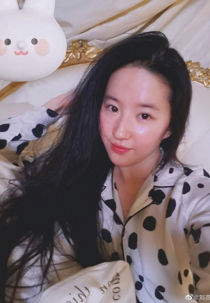 Nữ diễn viên vừa đăng bộ ảnh mặt mộc, hút hàng trăm nghìn lượt tương tác từ cư dân mạng. Trong ảnh, cô diện đồ ngủ, selfie với gương mặt không trang điểm cùng mái tóc đen dài. Nhiều người khen ngợi Lưu Diệc Phi tươi trẻ, làn da căng mịn. "Tôi không nghĩ cô ấy đã 34 tuổi, chỉ thấy giống một sinh viên đại học ở độ tuổi 20", tài khoản LiJunya bình luận nhận hơn 5 nghìn lượt thích.