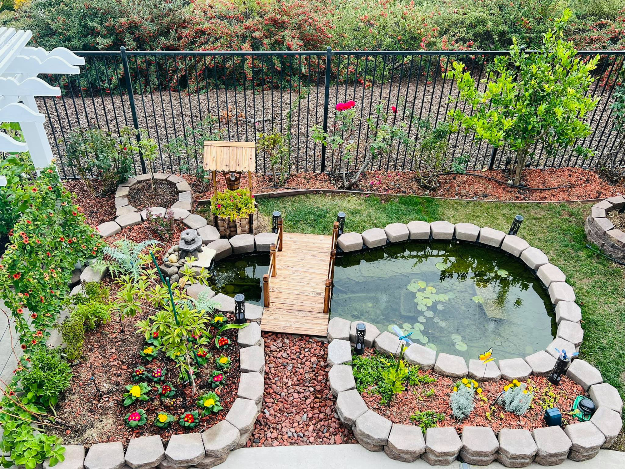 Chị lên ý tưởng và thiết kế khu vườn với tiểu cảnh vô cùng đẹp mắt.