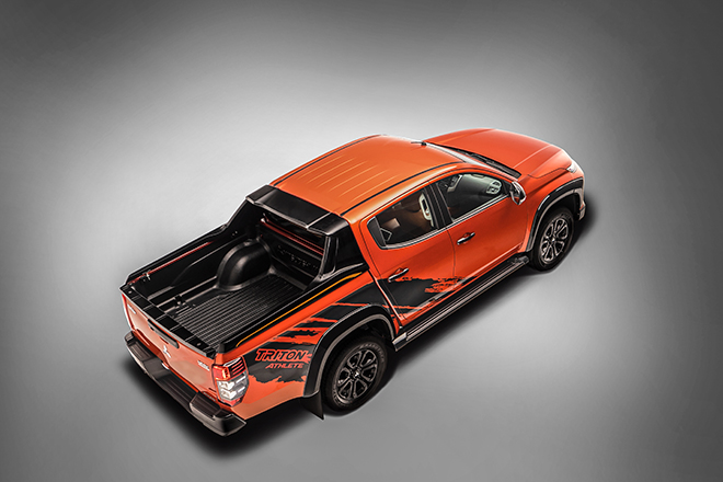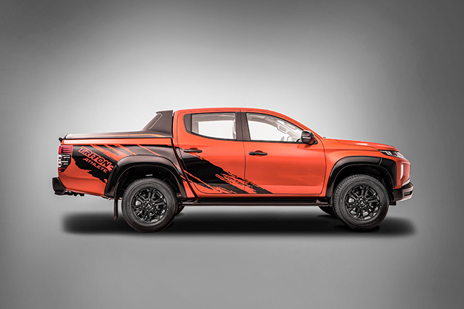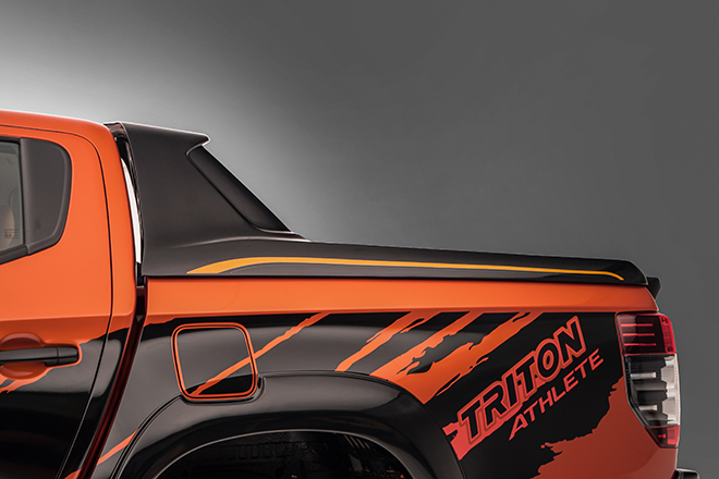 Thiết kế tem xe kéo dài về phía đuôi xe cùng dòng chữ “Triton Athlete" được tạo hình sắc sảo với tông màu tương phản khiến ngoại hình xe trở nên ấn tượng, nổi bật.