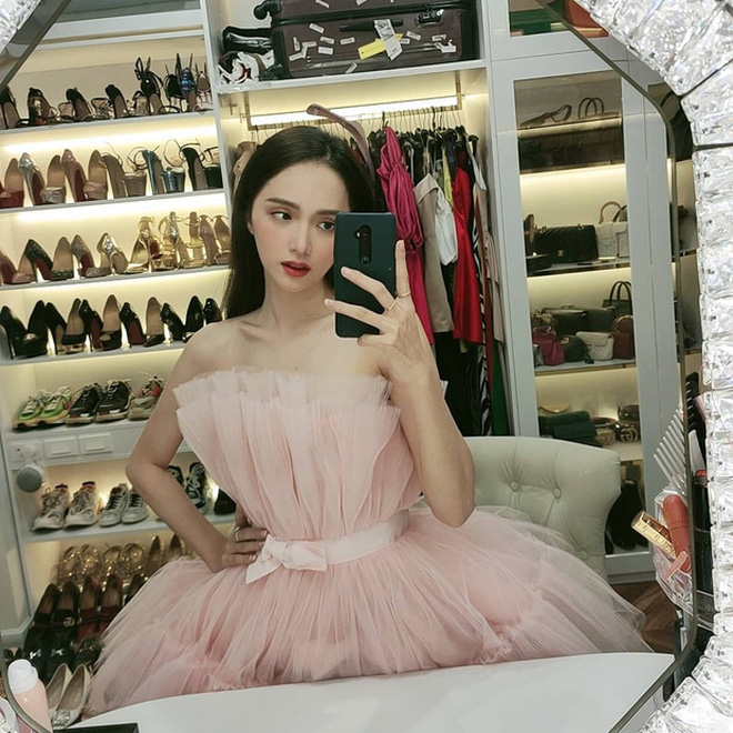 Theo dõi đoạn clip của Hoa hậu Hương Giang, người hâm mộ không khỏi ngỡ ngàng khi người đẹp này sở hữu căn phòng rộng với khu vực để giày dép, túi xách, quần áo đến từ các thương hiệu nổi tiếng trên thế giới như: Chanel, Dior, Hermes…
