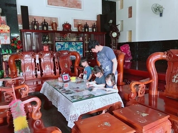 Cả gia đình hào hứng bên nhau khi được trải nghiệm nhiều hoạt động ở quê. (Ảnh: FBNV)