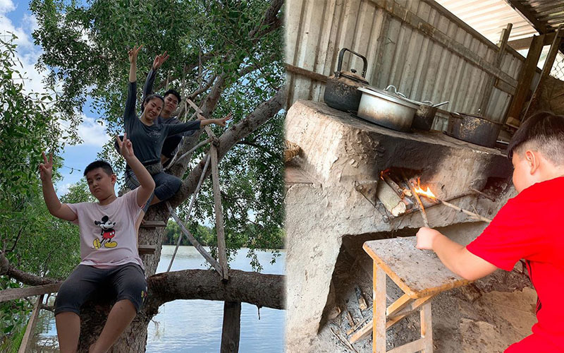 Mỗi khi về quê, cả gia đình lại có những trải nghiệm vô cùng thú vị. (Ảnh: FB Minh Hà)